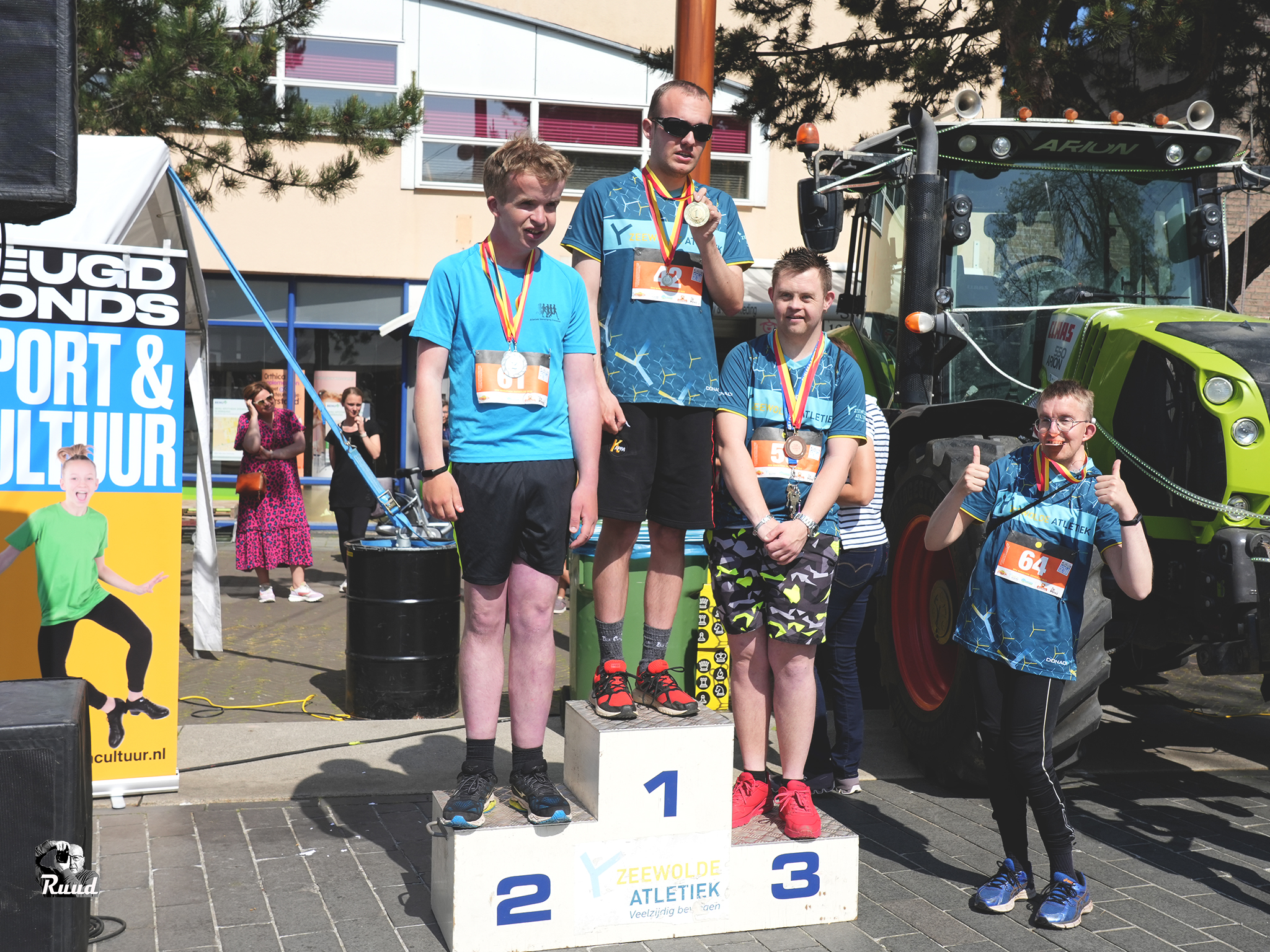 Eénmaal van start ga je in je eigen tempo rennen, rollen of wandelen. Zelfstandig of met een begeleider. Meedoen is voor iedereen een feest. Eénmaal over de finish kun je nog even blijven om ook andere lopers aan te moedigen, of te genieten van alle activiteiten op het Kerkplein. En alsof een finish medaille nog niet genoeg is, is hier ook een prijsuitreiking voor de snelste lopers.